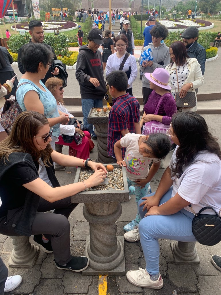 Heute waren wir bei der Ciudad Mitad del Mundo, eine Touristenattraktion am Äquator. Die Fahrt dort hin war schon mal etwas abenteuerlich, da die Buslinien sehr schlecht angeschrieben sind. Das Gebiet dort war ganz cool, auch mit einer interessanten Ausstellung über die verschiedenen Regionen Ecuadors. Wer wirklich am Äquator stehen will, muss allerdings die “Ciudad” verlassen und etwa 240 Meter in den Norden gehen, das wissen allerdings die wenigsten (glauben wir).
