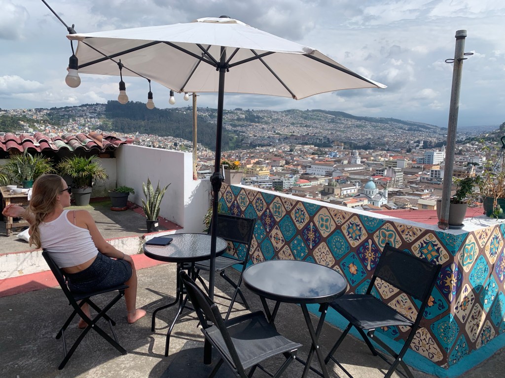 Trotz Unfall und einhergehendem Stau im Tunnel am Weg zum Flughafen, ging sich alles gut aus und wir kamen planmäßig um ca. halb 12 in der Nacht in Quito an. Das Flugzeug war mehr als nur halbleer, daher ging auch das Deboarding und die Passkontrolle flott. Wie ausgemacht wartete Fabian, ein gebürtiger Quiteño, auf uns und brachte uns sicher ins Hostel. Dort bat er uns noch im Auto sitzen zu bleiben, während er die Rezeption runter klingelte. Ob diese Vorkehrung der Sicherheitslage geschuldet war, waren wir uns unsicher, da die Straßen aber komplett leer waren, fühlten wir uns nicht unsicher.