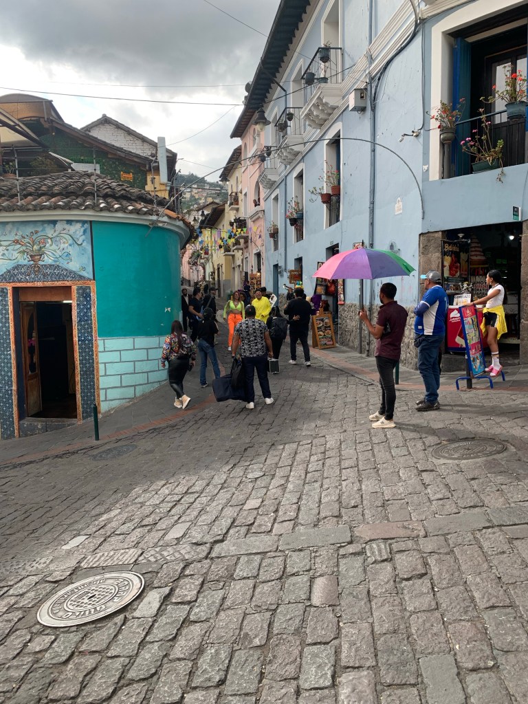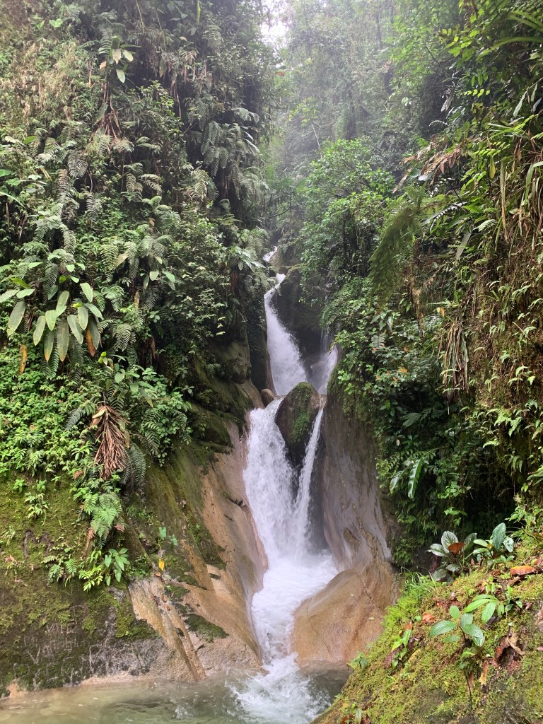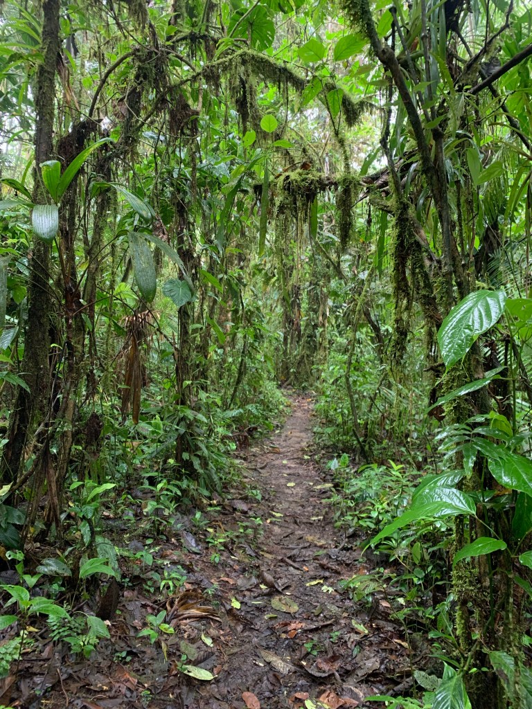 Am Wochenende hat es uns für eine Nacht in den Nebelwald von Mindo verschlagen. Nach einer relativ kurzen Busfahrt (2,5h), kamen wir Samstag Mittag in dem süßen Dorf an. Unser kleines Hostel wurde von einem sympathischen jungen Kerl betrieben, leider leidet die touristische Branche sehr unter der politischen Situation, weshalb wir die einzigen Gäste waren. Wir legten unsere Sachen nur kurz ab und machten uns auf den Weg was zu Essen zu finden. Wir fanden ein nettes kleines Lokal betrieben von einem älterem persischen Paar und genossen zur Abwechslung die Wahl aus zahlrreichen vegetarischen Optionen. Anschließend bummelten wir ein bisschen durch das Dorf, wurden dann aber von einem Platzregen in ein Cafe getrieben (so ein Pech). Dort erhielten wir gute Empfehlungen um uns den restlichen Tag die Zeit zu vertreiben. Trotz leichtem anhaltendem Regen, zogen wir los um den Wald etwas zu erkunden. Im Endeffekt hat es bald aufgehört/nur mehr getröpfelt und wir waren dafür ganz alleine auf den Wanderwegen unterwegs! Es war ein bezaubernder Wald, gefüllt von Vogelgeräuschen (ein paar haben wir sogar erblickt). Den Abend ließen wir bei ein paar Bier und mittelmäßigem Essen ausklingen.