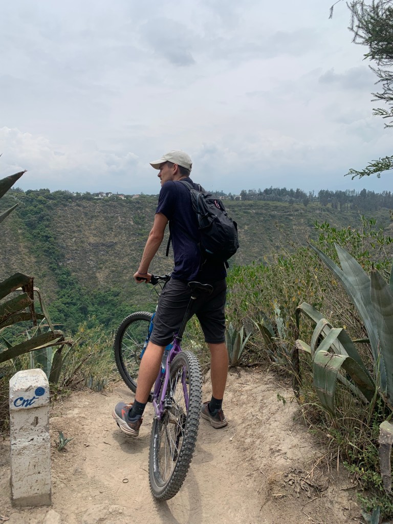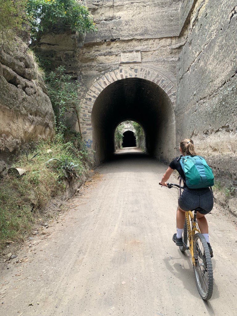 Am Samstag haben wir einen Ausflug mit dem Fahrrad gemacht, entlang einer alten Zugstrecke, welche früher Quito mit dem Nordosten verbunden hat. Zuerst ging es durch die Hintergärten einer Vorstadt Quitos (oder zählt es noch zu Quito? idk…), entlang etlicher prächtigen gated-communities, bis wir uns hinab in die Schlucht des Flusses Chiche stürtzten. Auf der anderen Seite ging es wieder bergauf, durch einige alte Tunnel mit fehlender Beleuchtung. Etwas creepy in kompletter Dunkelheit zu fahren, aber es gab zum Glück keine unerwarteten Löcher 😅