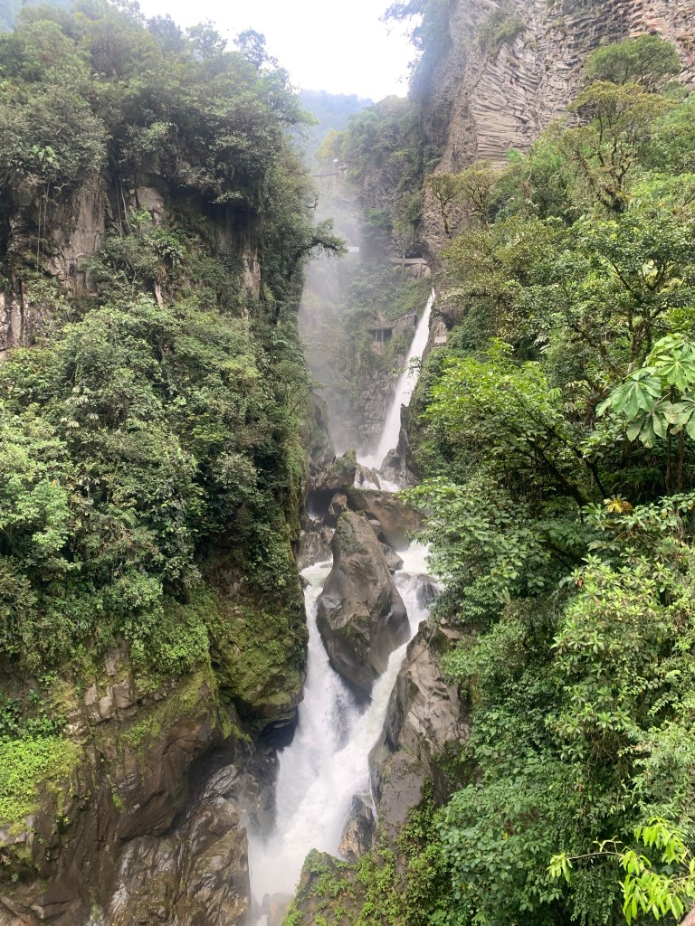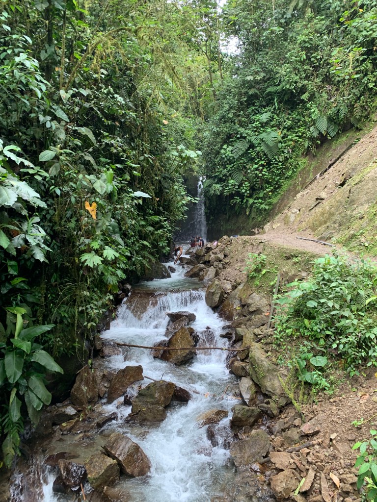 Am nächsten Tag machten wir noch eine Wanderung entlang vieler Wasserfälle, begleitet von unserem treuen Wegweiser Hans. Als wir erschöpft wieder in dem Dorf ankamen, retraceten wir unsere steps vom Perser zum Cafe. Wir kauften im Dorf noch unser Busticket nach Quito und gingen noch kurz ins Hostel zurück, an dem der Bus sowieso vorbei fuhr. Wir unterhielten uns noch kurz mit dem Gastgeber Mateo und waren beide etwas traurig als wir hörten, dass er das Hostel erst kurz vor dem Gefängnisausbruch eröffnete und zum Beispiel an dem Abend gar keine Gäste hatte :(. Es war ein kurzer Ausflug in die Natur, aber sehr schön und gut tuend.
