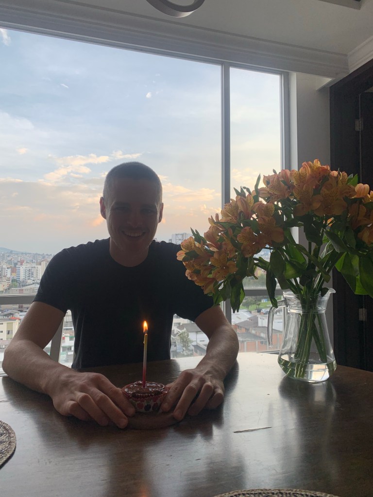Wir haben versucht aus Zuckerrohr Panela zu machen, um dann daraus die Limonade Aguapanela zu machen. Rausgekommen sind 2 kleine Gläser 🥴Lustige BäumeNebelwald ist ein sehr passender NameKleines Capybara (glaub ich)Cute doggoMichelada 😅Ausblick beim FrühstückHans waiting his turnHelpAja, auf einem Fußballmatch waren wir auch, war cool! 🙂Und ich hab Blumen und Geburtstagsmuffins von meiner besseren Hälfte bekommen 🥰