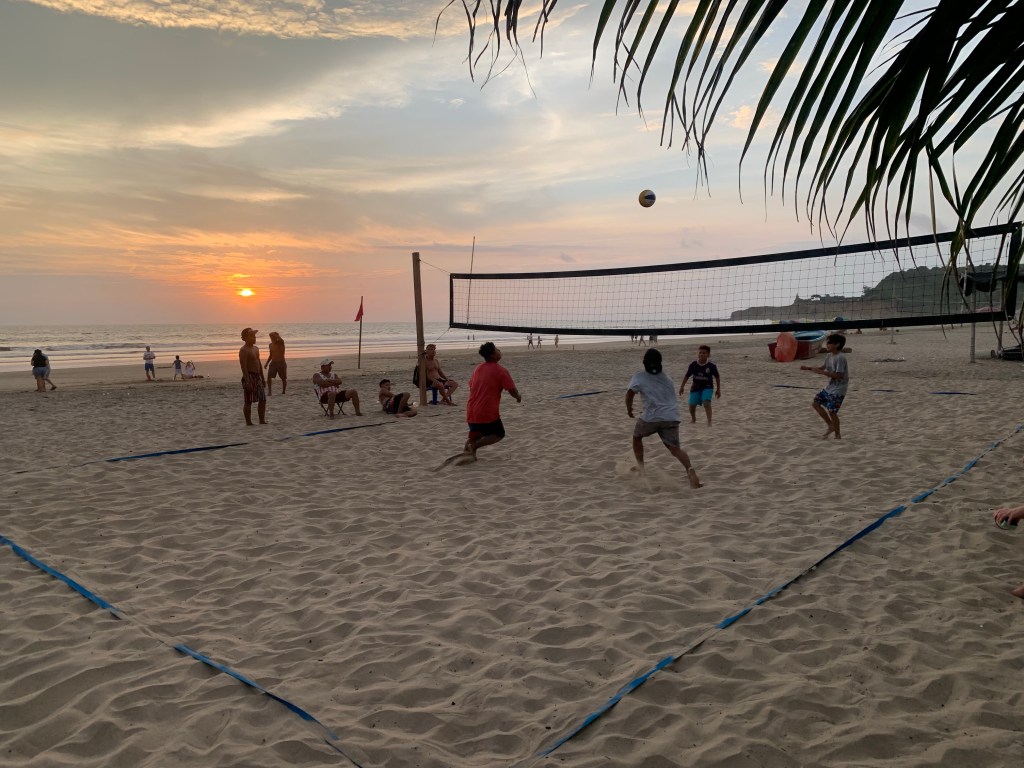 So ging es dann die nächsten Tage dahin, 1 Mal hatten wir 1,5h Surfunterricht, 1 Mal machten wir Yoga, sonst chillten wir am Strand, ließen uns von den Wellen durchbeuteln, borgten uns auch noch selber Surfbretter aus, spielten Karten und lasen Bücher, spielten Beachvolleyball gegen die Einheimischen. Besonders die Rettungsschwimmer waren ziemlich gute Spieler. Das was wir so von deren Leben mitbekamen, wirkte ziemlich genial: mit ihren Kumpels am Rettungsschwimmer-Turm chillen, nach Lust und Möglichkeiten Surfen gehen, jeden Tag um 16:30 Beachvolleyball…