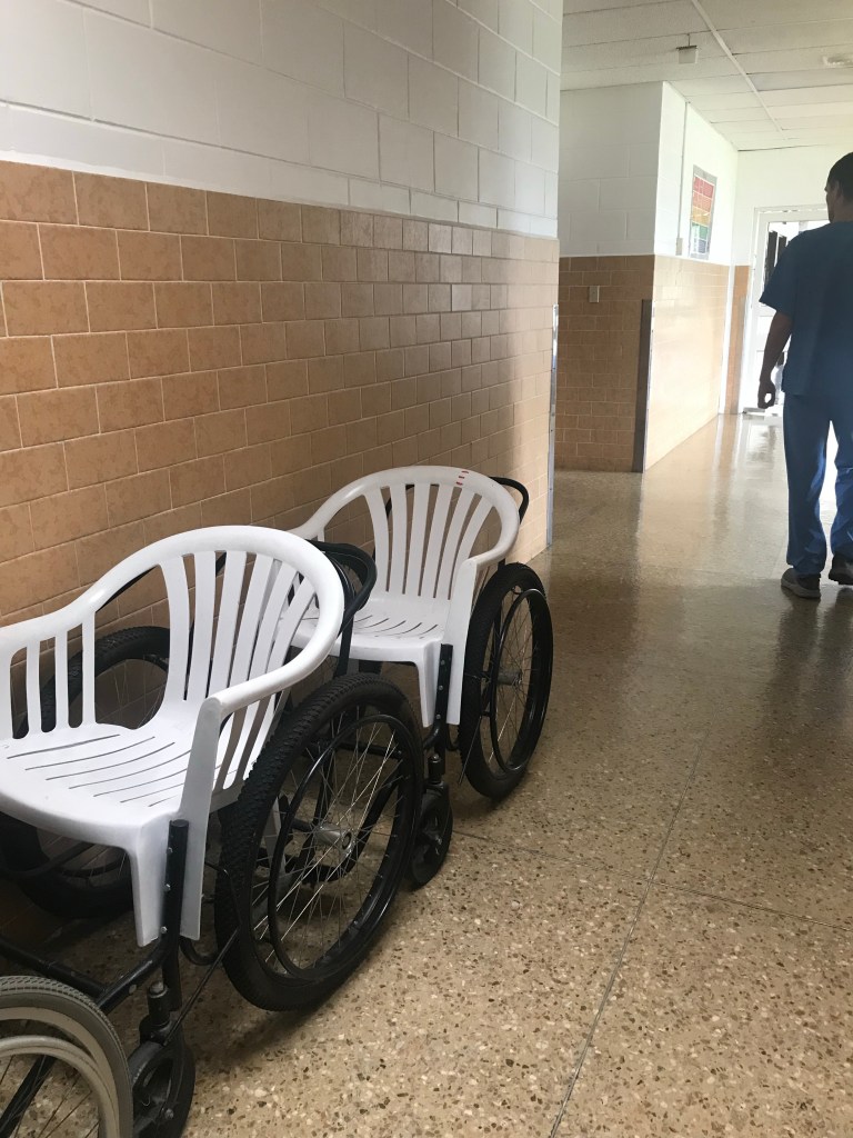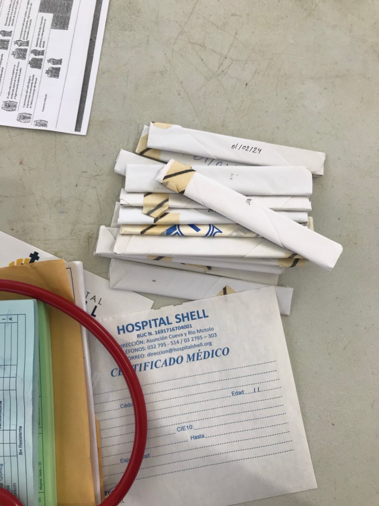 Ich weiß gar nicht, wo ich anfangen soll. In Shell war eigentlich alles noch recht fortschrittlich und das Krankenhaus war zwar ziemlich klein aber sehr sauber und ganz nett gestaltet. Fortschrittlich soll heißen, es wurde immerhin mit Computer gearbeitet, nicht ganz so fortschrittlich waren dafür die Rollstühle (siehe Fotos). Das Krankenhaus hat auch schon mal aktivere Zeiten gesehen, so stehen die Stationszimmer die meiste Zeit leer und auch die beiden Operationssäale werden nur semiregelmäßig bespielt. Früher war das Krankenhaus das einzige hier in der Umgebung, außerdem war bis vor kurzem ein Dr. Wolff Chefarzt, der anscheinend viel operierte und extra seinetwegen kamen damals viele Patienten nach Shell. Treibende Kraft ist hier der Niederländer Dr. Jacob Bezemer. Vater von 6, Priester einer Kichwa Gemeinde (in der er auch lebt), Missionar, Leishmaniose-Experte und seit 10 Jahren unbezahlter Arzt in Shell. Er ist zwar ein etwas merkwürdiger Mann, aber man kann viel von ihm lernen und er ist auch sehr freundlich. Montag und Dienstag verbrachten wir viel Zeit in seinem Ambulanzzimmer, um noch so viel wie möglich zu lernen bevor wir tiefer in den Regenwald aufbrechen (mit manchen Patienten redete er Kichwa, da erklärte er uns dann im Nachhinein den Fall). Wir haben auch direkt am ersten Tag einige seltenen Krankheiten gesehen: Leishmaniose, ausgeprägter Pilzbefall, Denguefieber, Miasislarve im Auge. Im Prinzip war aber nicht sehr viel los in der Ambulanz, was uns ermöglichte an den Nachmittagen ein paar der unzähligen Wasserfälle zu erkunden.