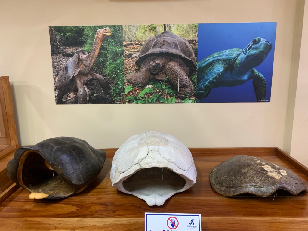 Unterschiedlichen SchildkrötenpanzerLaguna Ninfa auf Santa Cruz, hier erspähten wir das erste Mal eine Meeresschildkröte beim LuftholenHab versucht sie mit dem Fernglas zu erwischen Weg zur TortugabayEndlos weißer StrandRiesenschildkröte bahnt sich ihren Weg durchs Dickicht, sie werden auch die Gärtner v. Galapagos bezeichnet, weil sie Pflanzen niederreißen und in ihrem Kot etliche Samen sind die neues entstehen lassenSaying hello to new touristsLas GrietasAusblick richtung HafenAnlegestelle in Puerto Villamil ist belagertBisschen getarnt aber unser erster Patas Azules