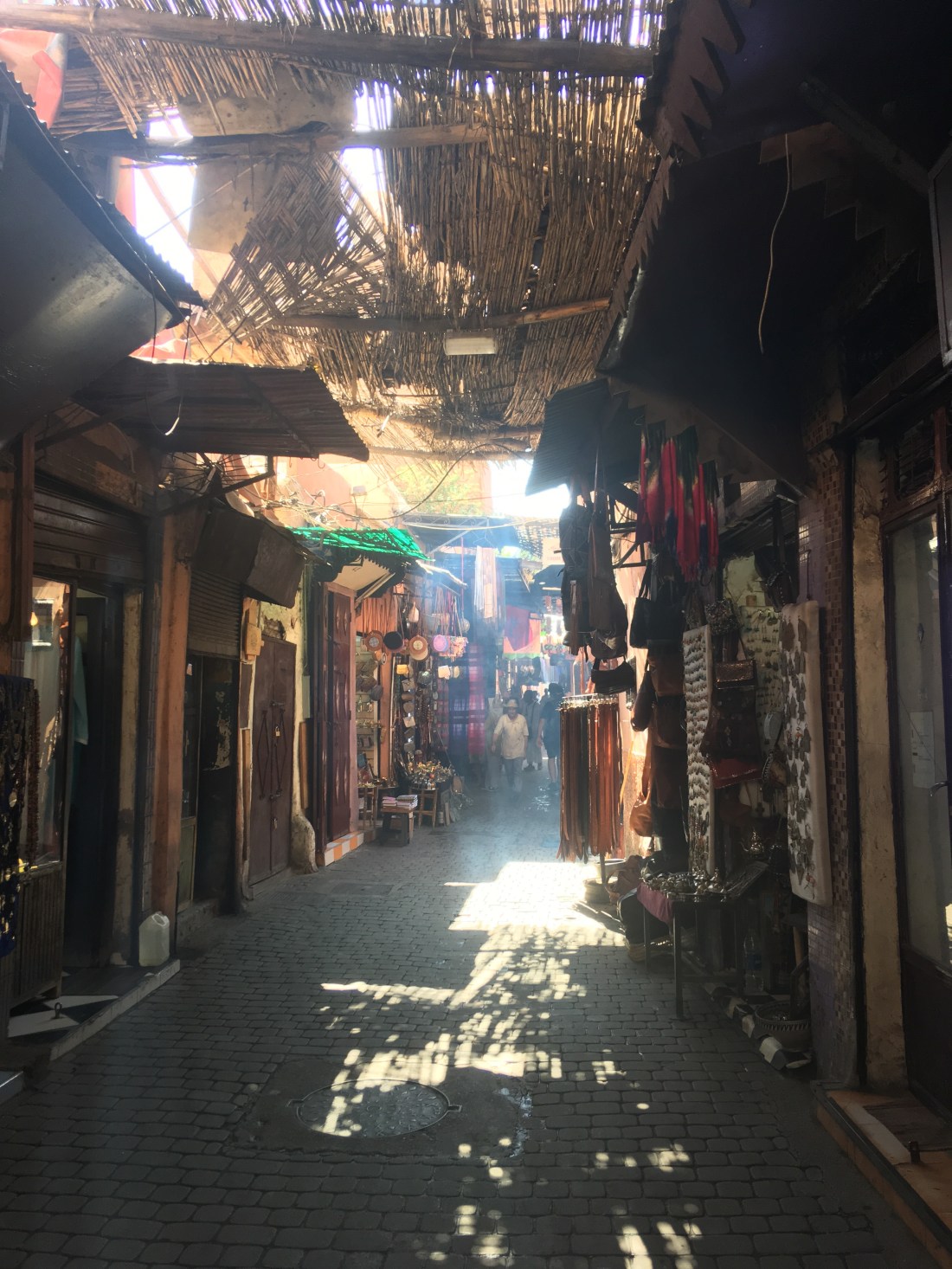 Das Hammam war eine sehr leiwande Erfahrung aber vom Entspannungsfaktor nichts außerirdisches. Die Symbolik und die Herstellung der Teppiche war auch sehr interessant, wenn auch etwas deprimierend; so wie mit eh viel zu vielen anderen Sachen werden diese nämlich meistens von Frauen in irgendwelchen kleinen Bergdörfern fabriziert und bekommen dafür 25 Cent am Tag. Die Souks waren auch spannend zu sehen, für einen Stadtfremden wirkten sie komplett ohne Plan und chaotisch, in Wahrheit waren sie aber in Bereiche aufgeteilt wo fast ausschließlich bestimmte Sachen verkauft werden. Wenn man aber einmal nicht aufpasst und falsch abbiegt kann es leicht sein, dass man sich verläuft. Schaut man dann allerdings auf der Karte nach wo man ist (bzw wirkt ein bisschen verlaufen), wird man gleich angesprochen ob man Wegweisungen braucht. Die sind dann oft so hartnäckig, dass einem dann manchmal (zb) der Name vom Restaurant herausrutscht. Daraufhin bringen sie einen zwar meistens in die richtige Richtung, verlangen dann aber richtig dreist eine Entlohnung.