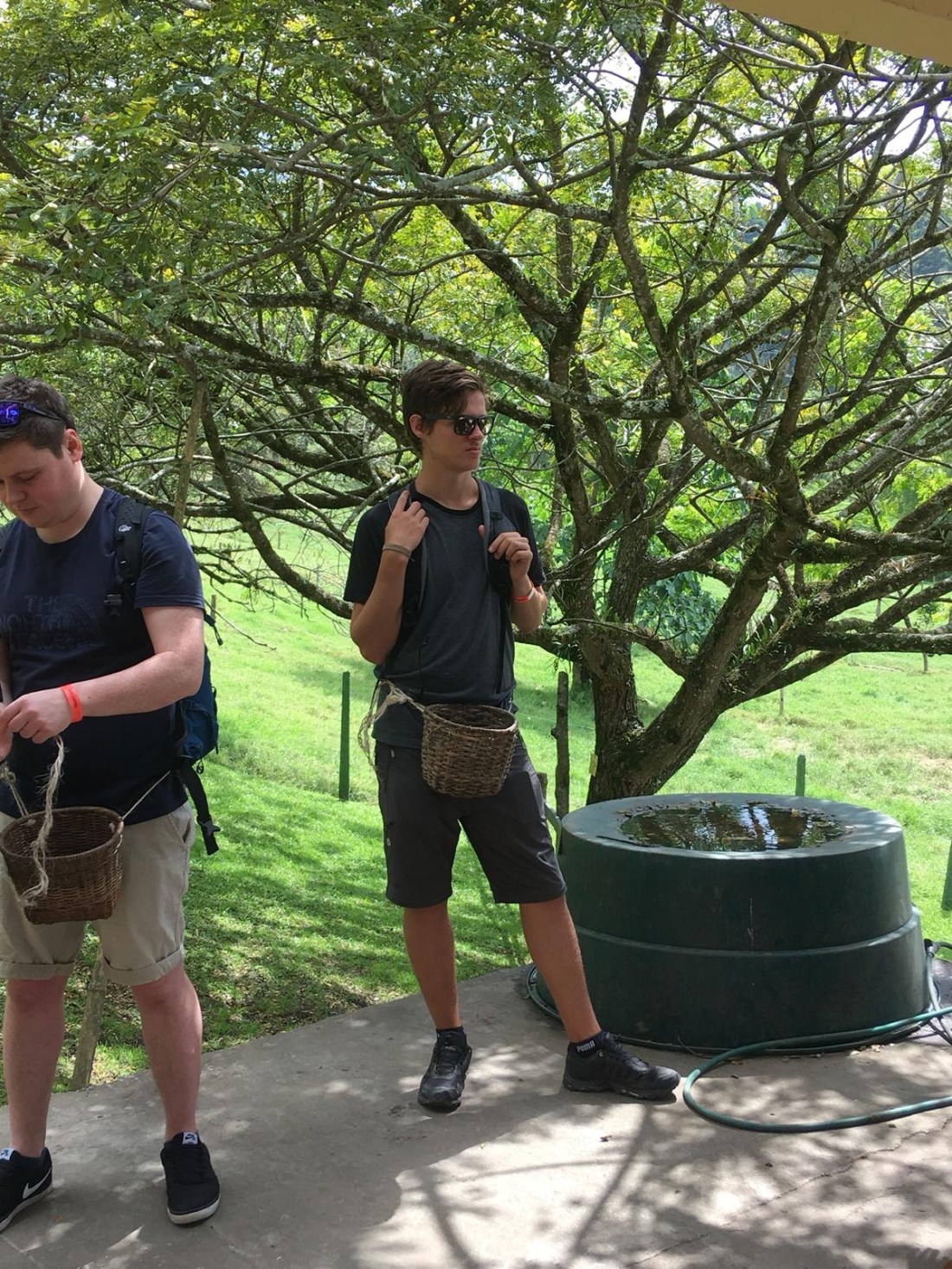 Am nächsten Morgen wollten wir eigentlich früh aufstehen, irgendwo schnell Frühstücken und dann einen der ersten Jeeps zur Hauptattraktion der Umgebung nehmen. Da wir aber weder früh aufgestanden sind, noch schnell frühstückten – wir mussten ewig warten für eine Portion Eier – und das Wetter auch nicht mitspielte entschieden wir uns das ganze auf den nächsten Tag zu verschieben und stattdessen eine Kaffeeplantage zu besuchen. Nach einem einstündigem Spaziergang durch sanfte Hügel kamen wir bei der ersten Plantage vorbei. Schonbald waren immer mehr links und rechts zu sehen, die die uns empfohlen wurde war auch nicht mehr weit. Die Tour inkludierte eine Veranschaulichung des Prozesses der Kaffeebohne vom Samen zum Getränk. Wir konnten unsere eigenen Bohnen pflanzen, pflücken, mit einer Maschine entschalen usw. Am Ende konnten wir den sehr leckeren und geschmacksvollen Kaffee probieren (der kam logischer Weise nicht von den Bohnen die wir selber gepflückt haben weil die trocknen müssen usw.).