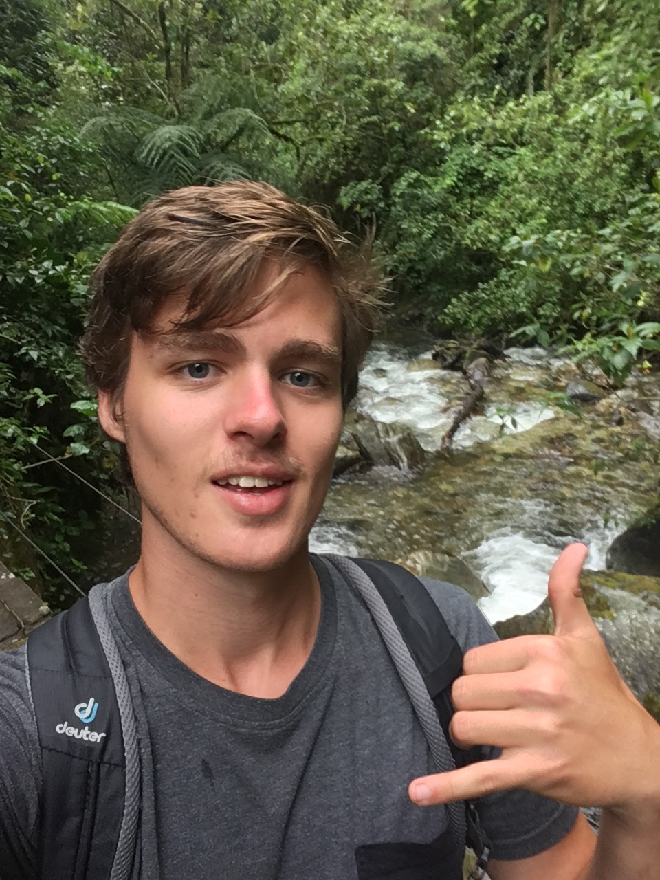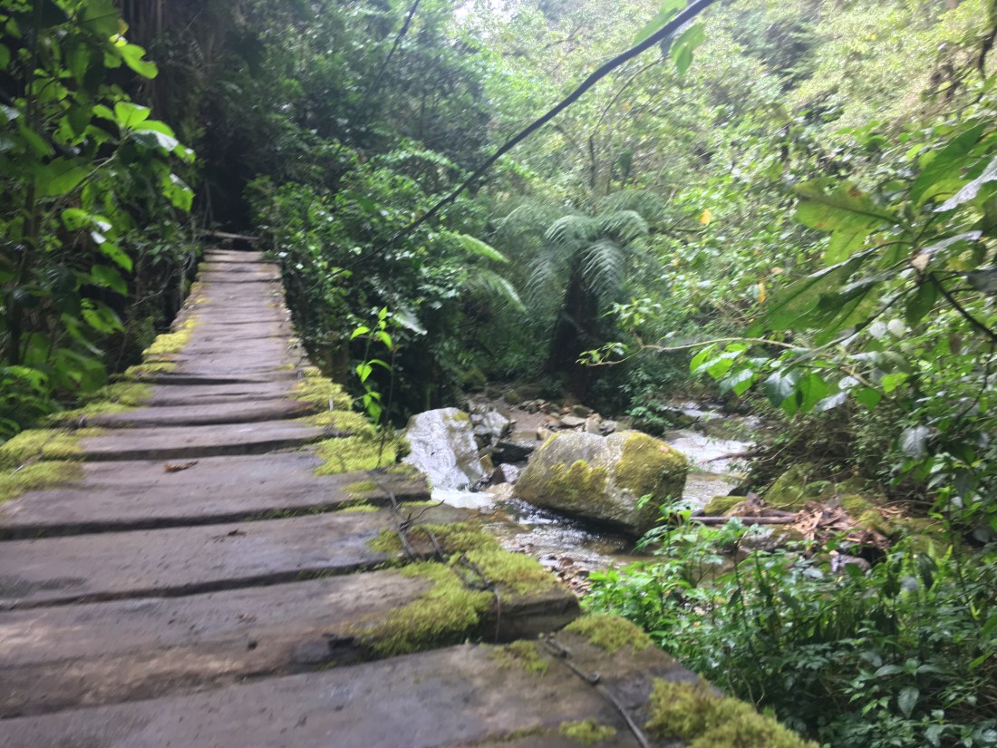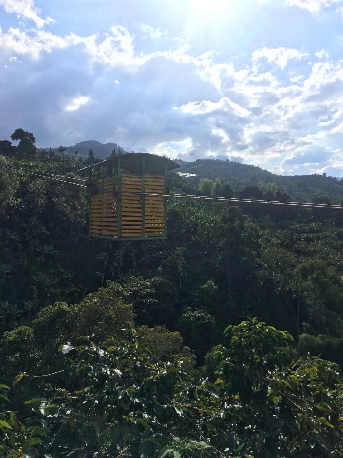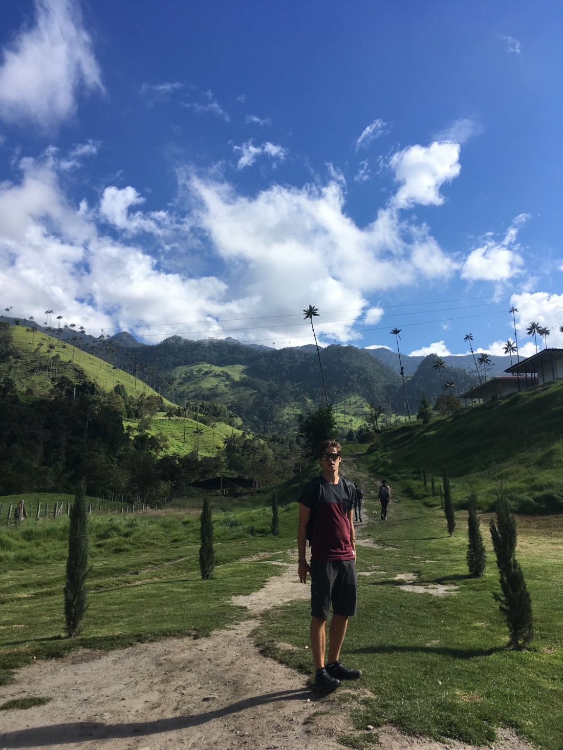Der nächste Morgen war demnach kein einfacher. Wir schafften es dennoch uns aus dem Bett zu raffen, Frühstück zu machen und einen der ersten Jeeps zu nehmen. Die fahrt zum Valle de Cocora, welches die höchsten Palmen der Welt behaust, war landschaftlich wohl eine der schönsten bis jetzt. Ich stand hinten auf einem Trittbrett und konnte so Fahrtwind und Aussicht genießen. Eine Menge Leute (Clemens, Hannah, Helena und Wolfi inkludierend) empfohl uns den Trek entgegen die vorgegeben Richtung zu machen, also gingen wir schnurstracks am Eingang vorbei und erblickten den Palmenwald wenig später. Ein weiterer Vorteil daran war, dass das Wetter in der Früh wesentlich viel besser war als zu Mittag/am frühen Nachmittag. Die Wanderung dauerte länger als gedacht, wahrscheinlich lag das aber daran, dass wir viele Pausen einlegten und einmal länger bei einem Aussichtspunkt im Gras lagen und gemeinsam litten 🙃. Am Weg lag außerdem ein Hütte mit Futterstelle für Kolibris; kaum einfangbar mit der Handykamera die kleinen Racker, aber sehr interessante und schöne Vögel! Das letzte Stück war entlang eines Flusses durch dichten Regenwald, immer wieder sah man auf den Hang mit dem Palmenwald, dieser war aber zu dieser Zeit bereits in Wolken gekleidet.