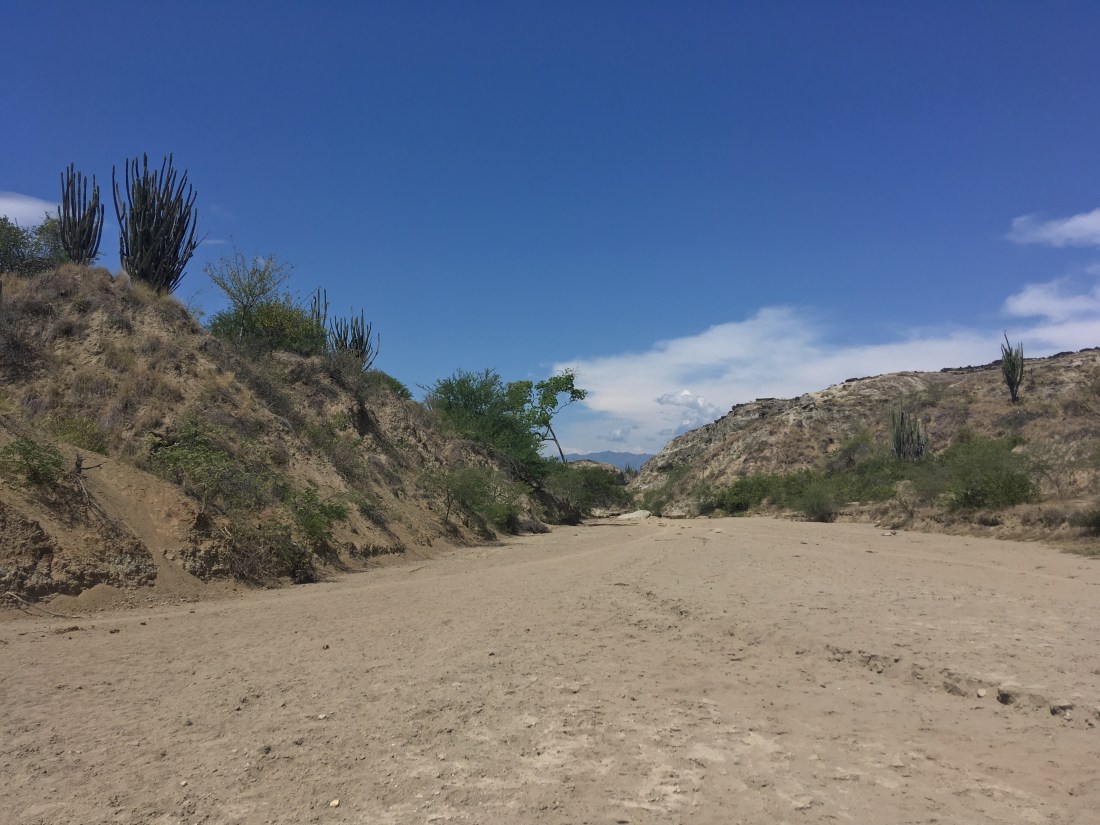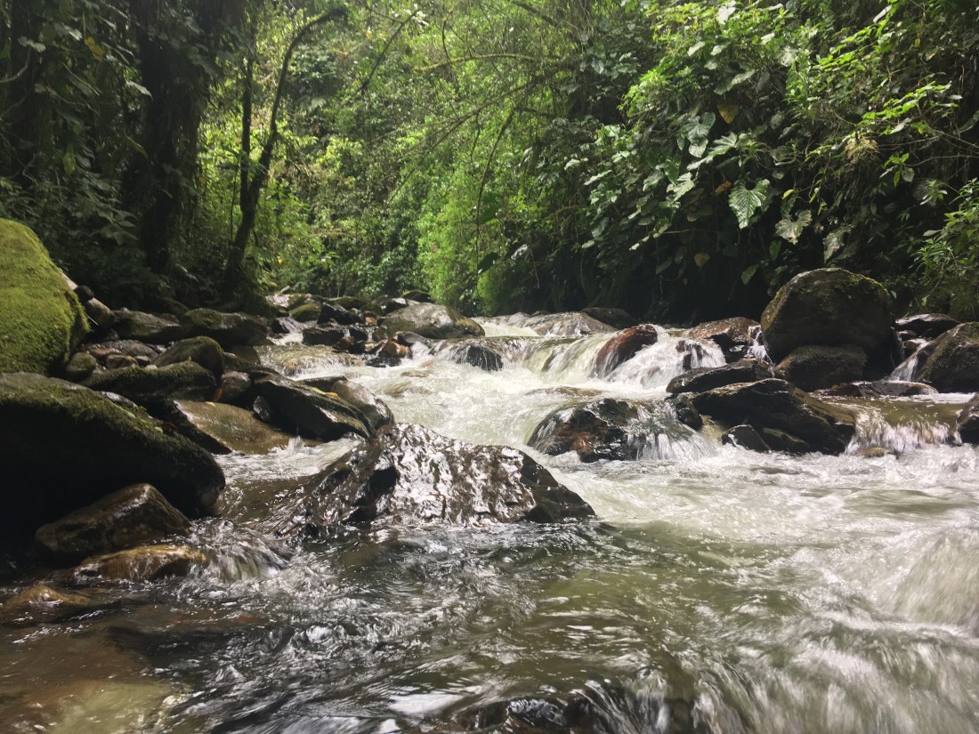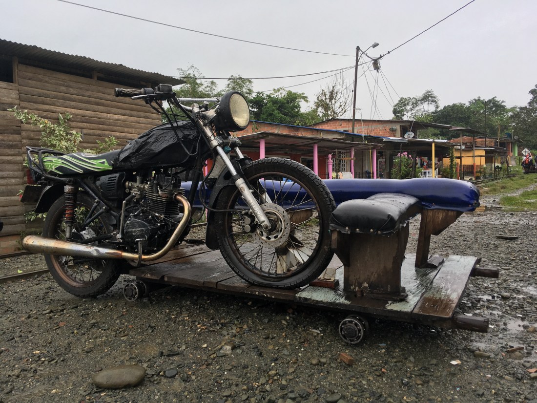 Gestern folgten wir dem Rat Ryans und machten uns auf die Suche nach San Cipriano. Das ist eine mini afro-amerikanische Gemeinde zwischen Cali und der Pazifikküste, die nur durch brujitas erreichbar ist. Brujitas sind in Wahrheit Holzpaletten mit unten dran montierten Eisenbahnrädern und einem Motorrad das mit dem Vorderreifen auf der Palette fixiert wird und mit dem Hinterreifen am Gleis aufliegt, entworfen haben sie diese weil die Züge nach San Cipriano eingestellt wurden und das Dorf nicht abgeschottet von der Außenwelt werden wollte. Das ganze Unterfangen verlief nicht so wie geplant; die Busfahrt war teurer als gedacht und dauerte eine Stunde länger, die letzte brujita fuhr bereits um 17:00 zurück, es fang an zu schütten usw. Trotzdem war es das wert, die Fahrt durch den Regenwald auf den alten Gleisen war einzigartig, die Menschen im Ort waren erfreut uns zu sehen, es gab dort einen der angeblich klarsten Flüsse Kolumbiens – in dem wir auch ganz entspannt auf einem Tube entlang trieben.