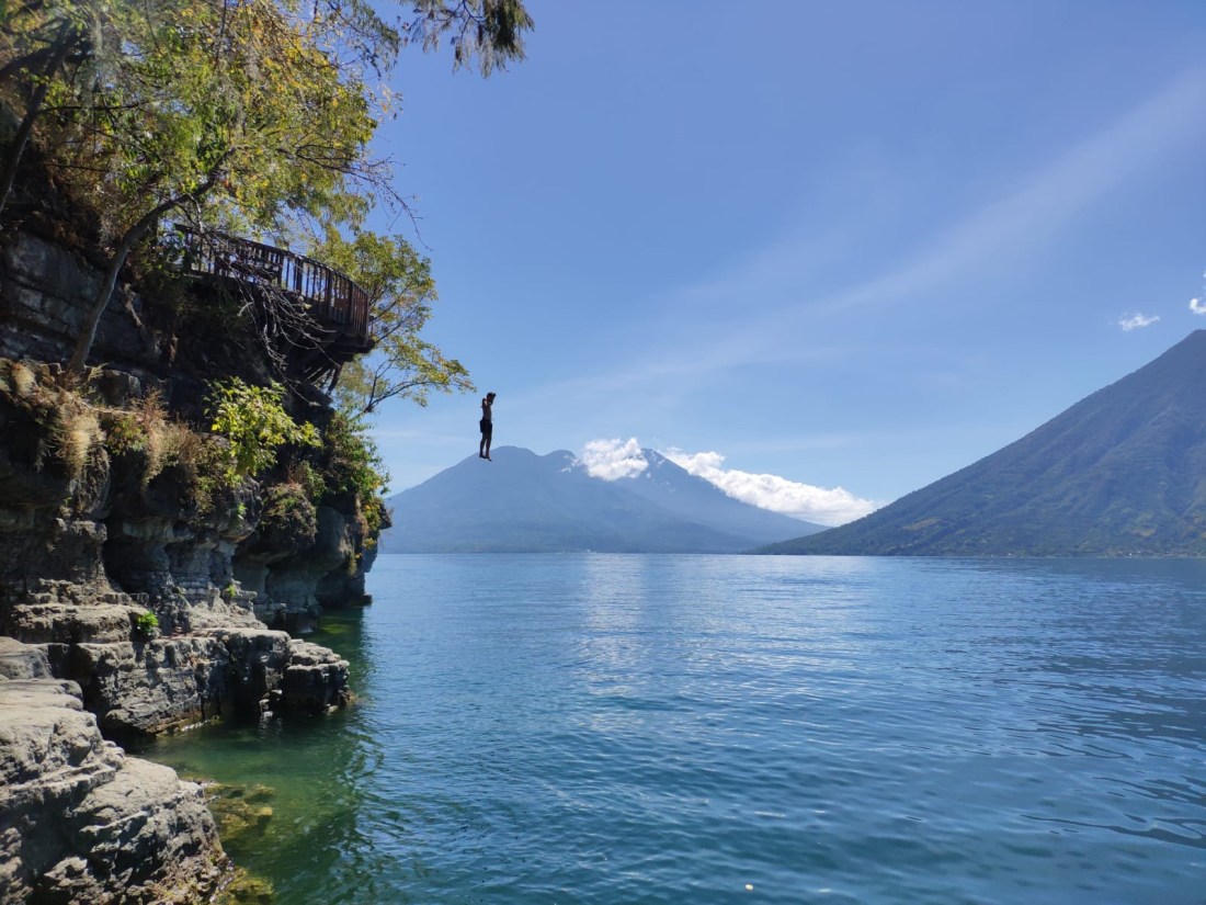 Heute, Montag, fuhren wir mit dem Boot nach San Marcus und sonnenbadeten dort in einem “Nationalpark”. Dort gab es auch sehr coole Gelegenheiten zum in den See springen (mit einem Seil, über einen Baum der horizontal über das Wasser hinaus wuchs, oder von einer fast 10 Meter hohen Platform) und das Wasser war angenehem erfrischend.