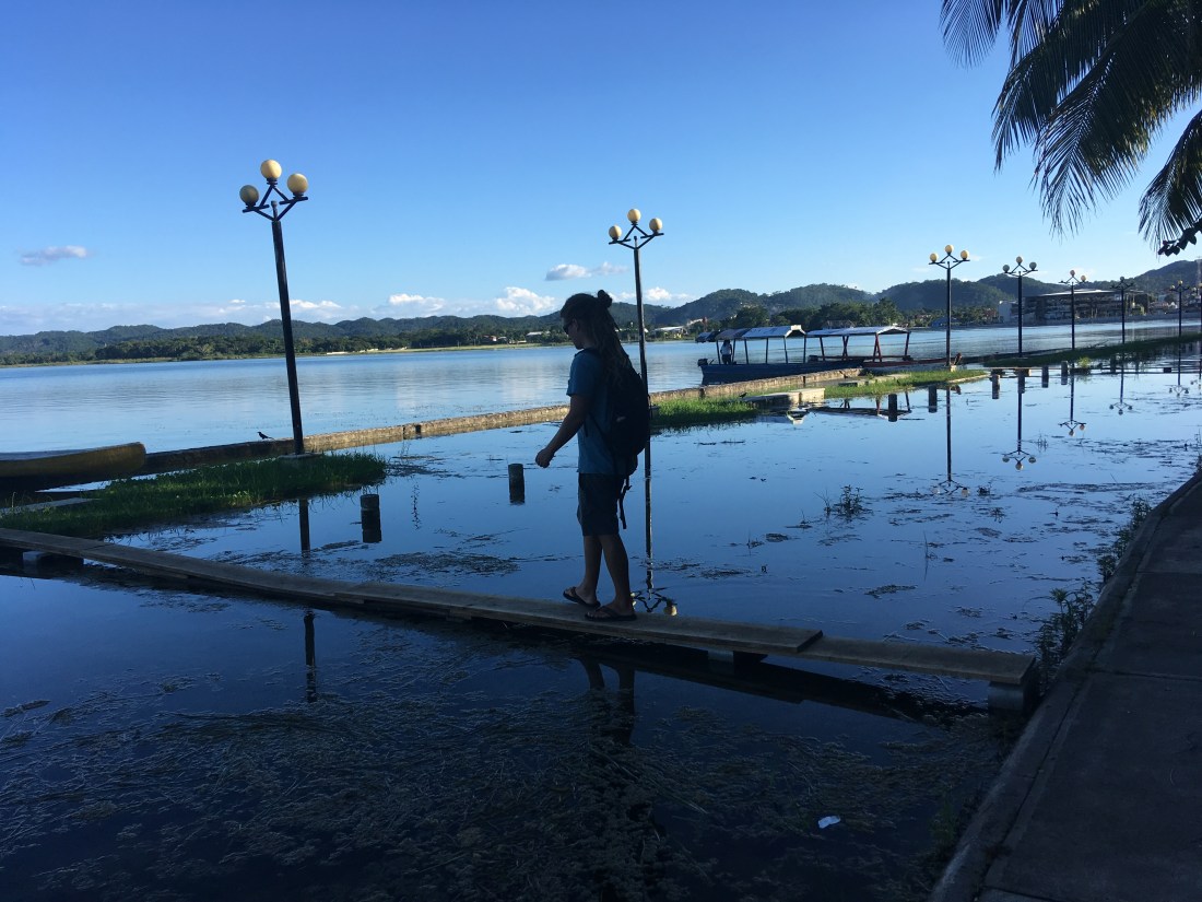 Um etwa 20:00 kamen wir dann in Flores an. Ein sehr schönes Dorf auf einer Insel in einem See. Da wir erledigt waren wollten wir nicht lange nach einer Unterkunft suchen und folgten zwei Niederländern aus unserem Bus, die bereits eine bestimmte anpeilten (dieses Hostel war dann auch ein ziemlicher Glücksgriff, siehe Fotos @Clemenstravels).